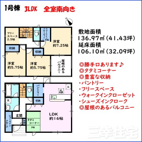三幸住宅ならではの特典を多数用意しております。ぜひこの機会にご利用ください!①梅雨と花粉 これからの季節に大活躍する『ガス衣類乾燥機』を設置します♪②建築工事の跡を残しませんご入居前に『ハウスクリーニング』を実施します!