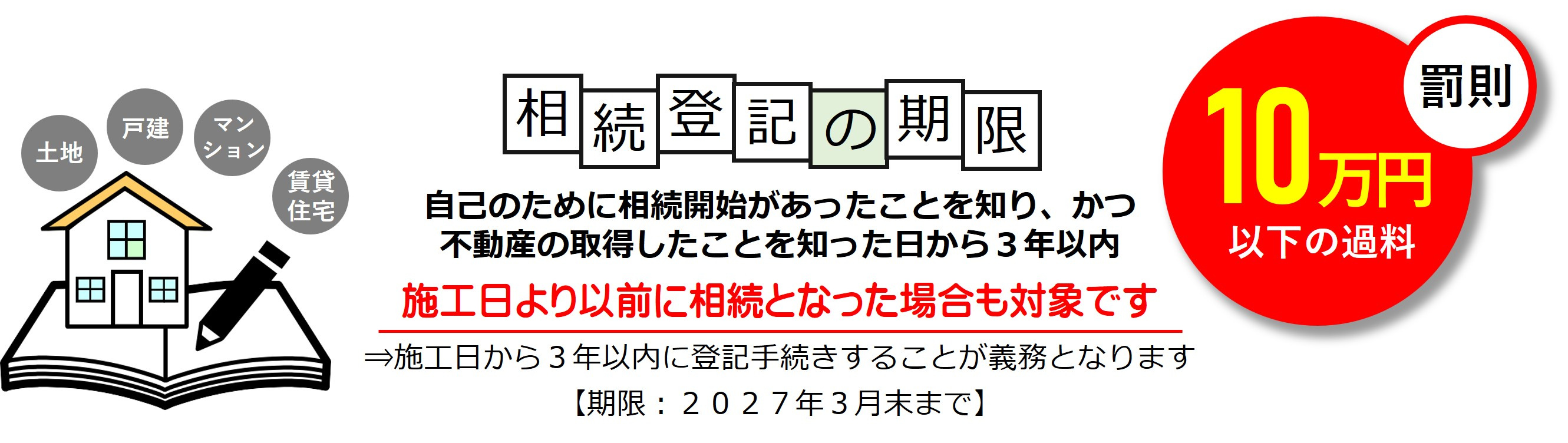 これにより、定められた期間内に所有権の移転登記*手続きを行わないと、罰則規定が設けられました。